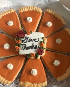 Join us for a fun night of Cookie Decorating. This is a step by step instructed class. We will learn different techniques for decorating cookies with royal icing. Each person will decorate a total of 9 cookies. We will be making our famous “pumpkin pie” sugar cookie set. All supplies and packaging will be included so you can bring the treats home at the end of class. Must sign up in advance. Open to adults and older children who want to learn the basic skills of cookie decorating. This is a good class for beginners. No experience needed. Call to sign up. (These cookies freeze well so you can save them for Thanksgiving!).